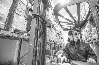 “这还只是-5℃的库,往里走最低温的库是-25℃。”说话的人叫张淼,是中百生鲜物流园冷库作业部主管,他一边递上防寒服一边带着大家往里走。周围电动叉车灵活轻巧地在结霜的地面上穿行,用手碰一下墙壁,冻得有点粘黏。在-25℃的冷库里,能清楚地看到搬运工人们眼睫毛上的白霜,塑胶凉鞋冻得梆硬。