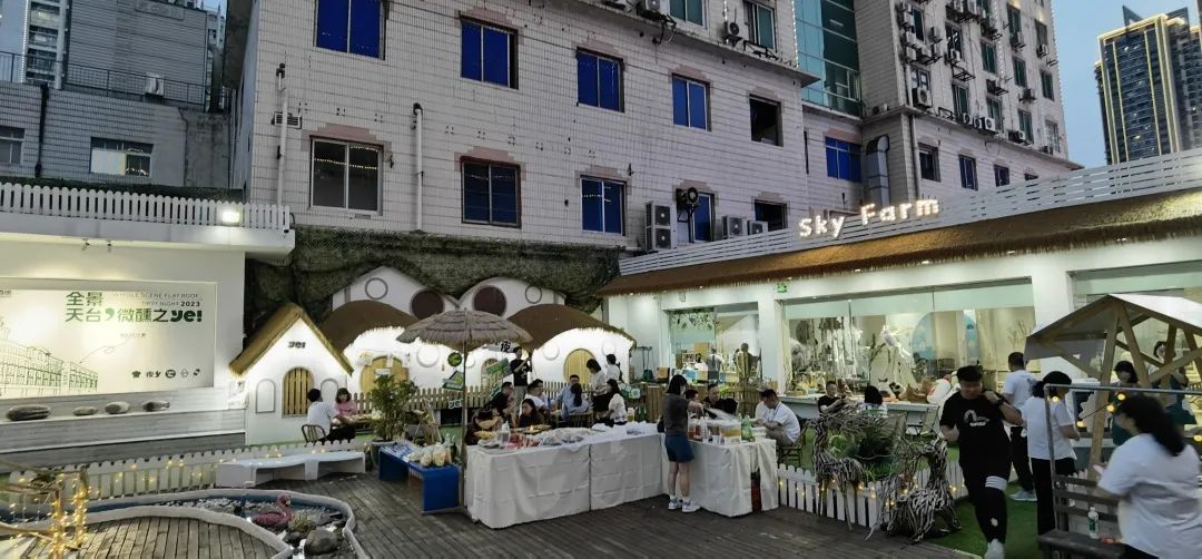 5月19日,伴随落日余晖,商场邀约供应商和顾客朋友到六楼天台“天空萌宠牧场”参加活动,迎着夏夜晚风,微醺之夜从此刻开始。户外露营设备样样俱全,烧鸟、轻食、咖啡、啤酒应有尽有,灯光、音乐、电影氛围烘托到位,天台瞬间化身成为都市休闲社交场。
